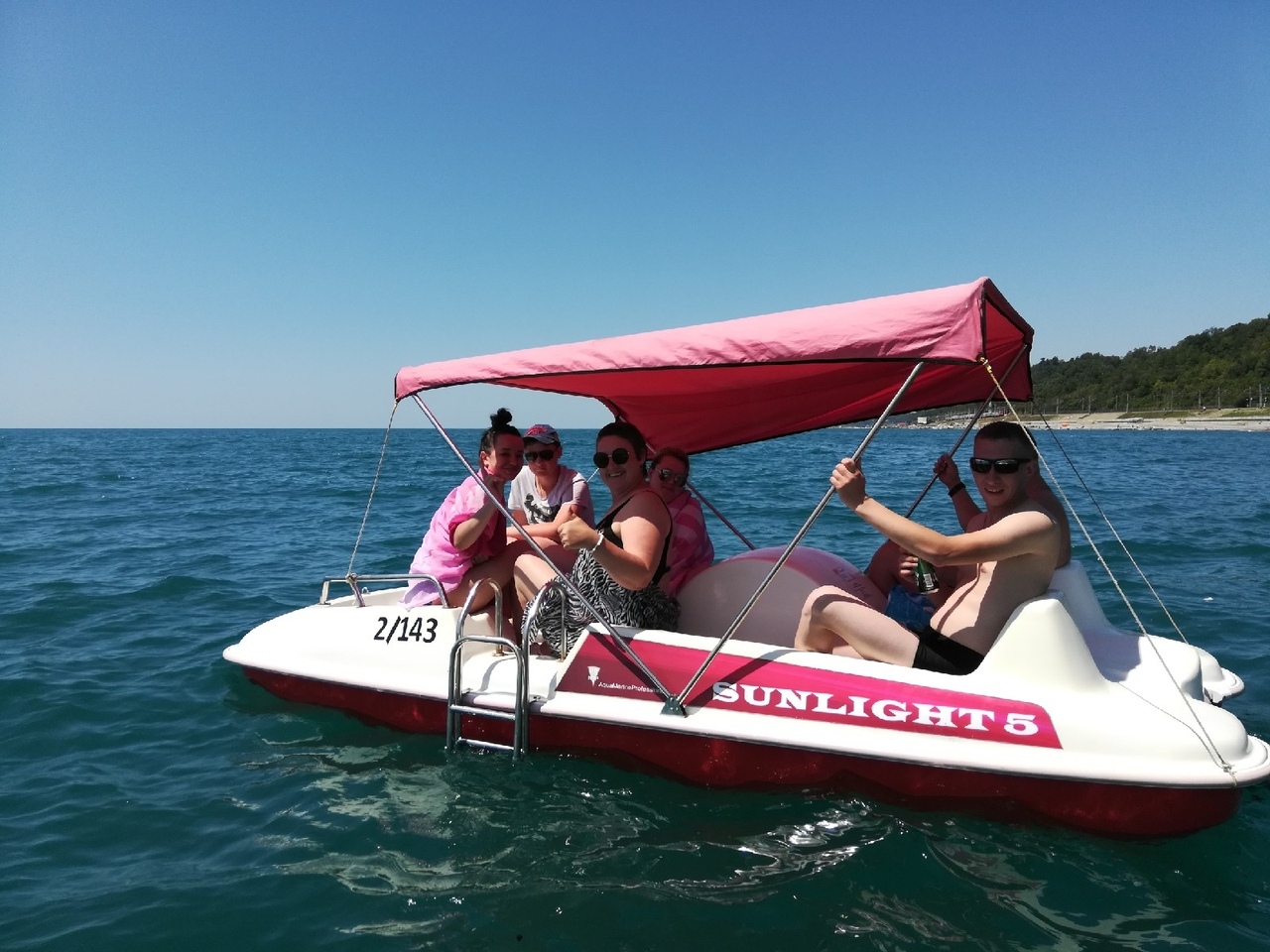 Оставляем вещи в комнате для хранения, переодеваемся, идем на море купаться, Дорога к морю проходит через красивейший тенистый парк и занимает не более 15 минут.Расстояние до пляжа 925 м . Заселяемся вечером по мере готовности номеров.